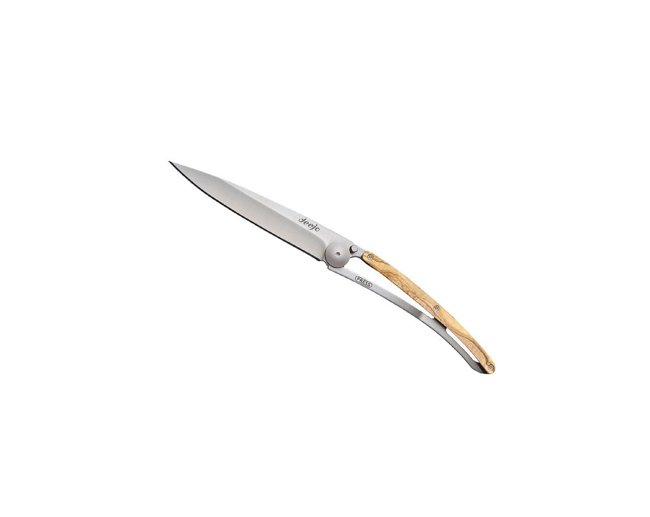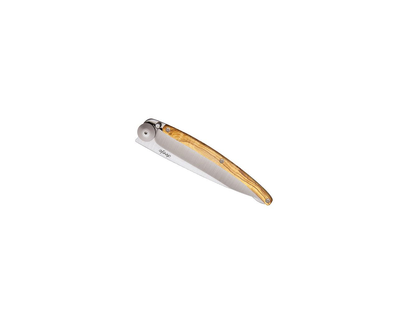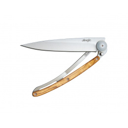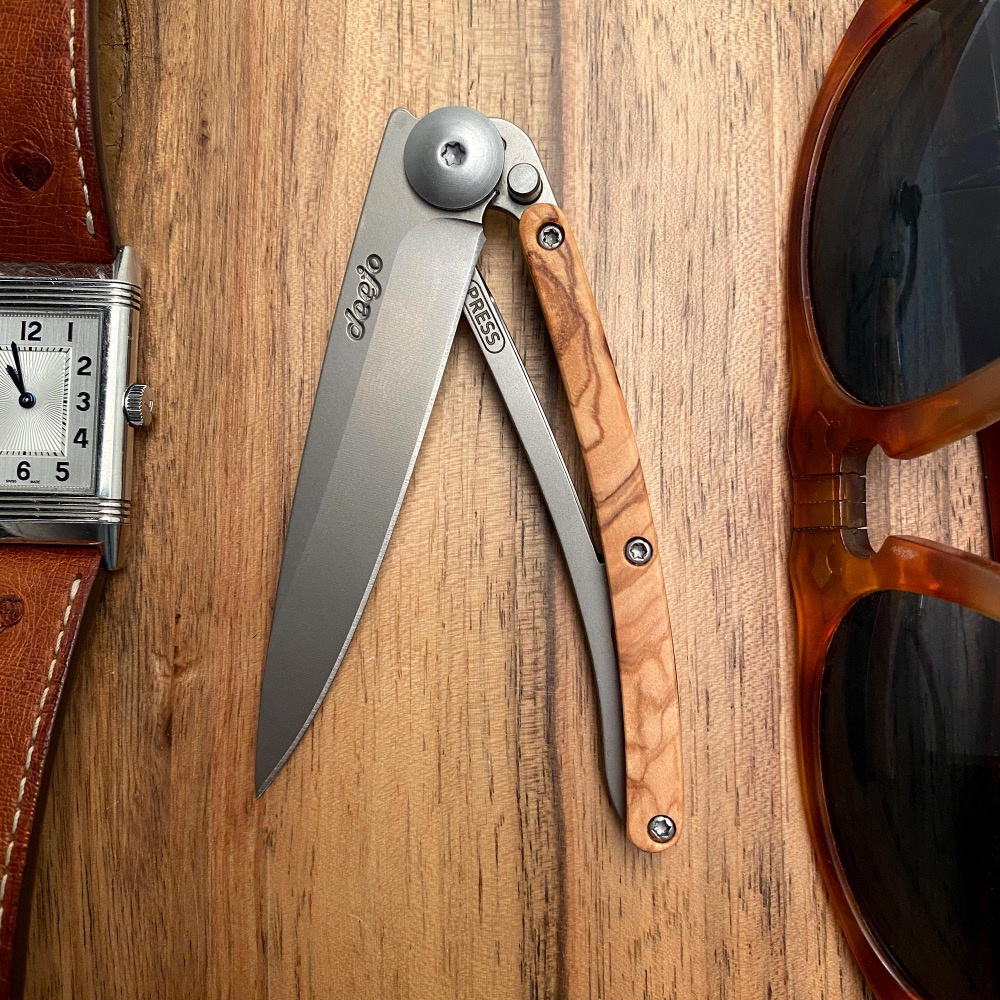 Stylový ultralehký nůž Deejo se střenkou z olivového dřeva.