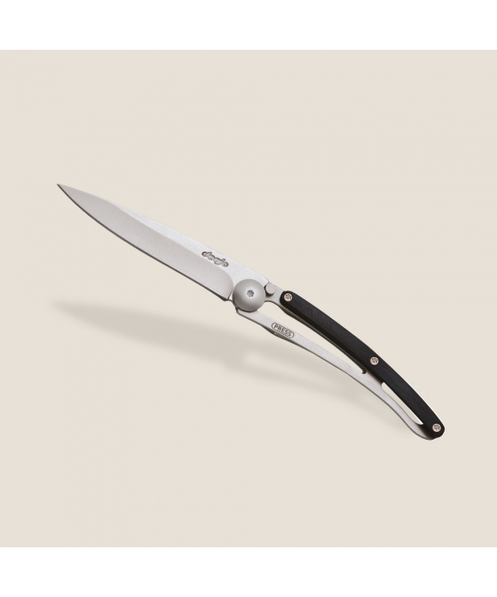 Stylový ultralehký nůž Deejo se střenkou z ebenového dřeva.