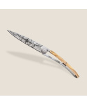 Stylový ultralehký nůž Deejo o hmotnosti 27 gramů se střenkou olivového dřeva a tetováním "zeměVíce