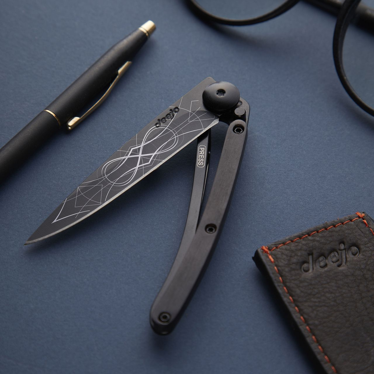 Stylový ultralehký nůž Deejo se střenkou z ebenového dřeva a elegantní černou čepelí s tetováním &quVíce