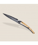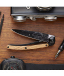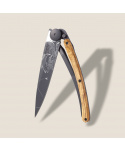 Stylový ultralehký nůž Deejo se střenkou z olivového dřeva a elegantní černou čepelí s tetováním &quVíce