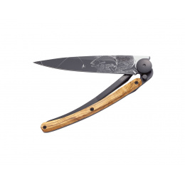 Popis Kapesní nůž Deejo 9GB103 Tattoo Black 27g olive wood Trout