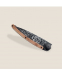 Stylový ultralehký nůž Deejo se střenkou z kořene exotického jalovce a elegantní černou čepelí s tet