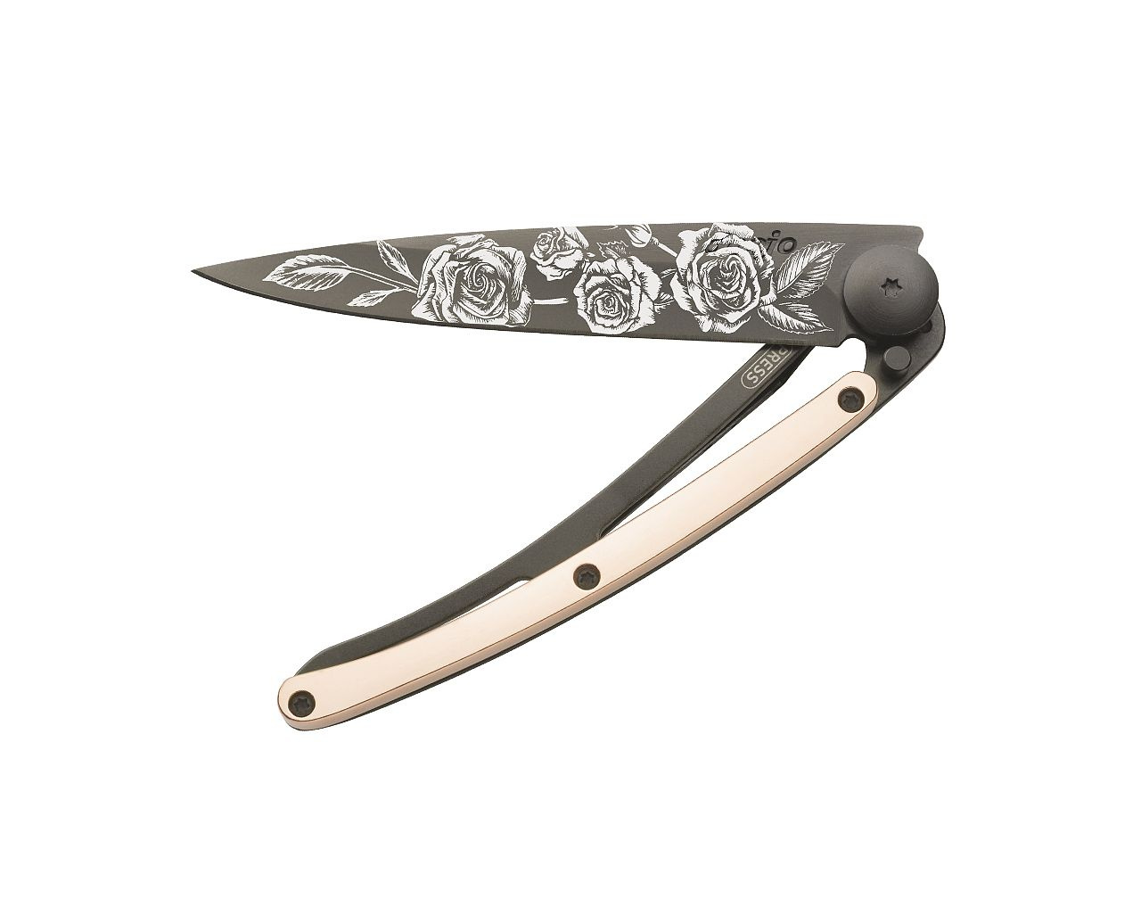 Kapesní nůž Deejo 9GM023 GOLD Tattoo Black 27g18kt pink gold Roses