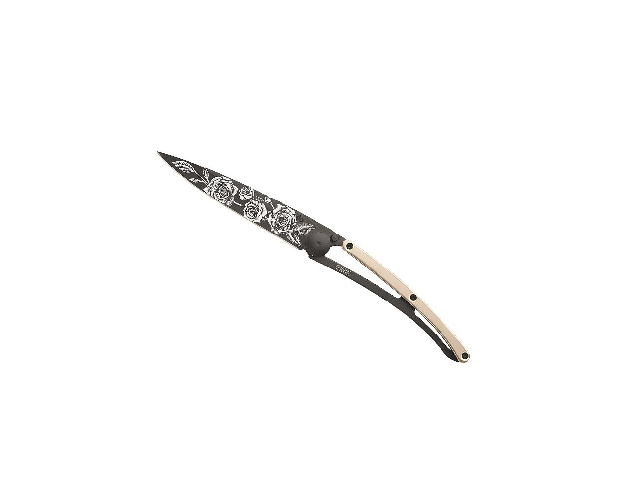 Popis Kapesní nůž Deejo 9GM023 GOLD Tattoo Black 27g18kt pink gold Roses