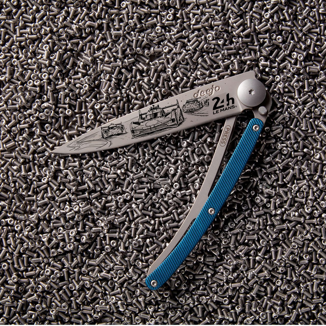 Popis Kapesní nůž Deejo DEE24H002 24H Le Mans Trio 37g aluminium blue limitovaná edice