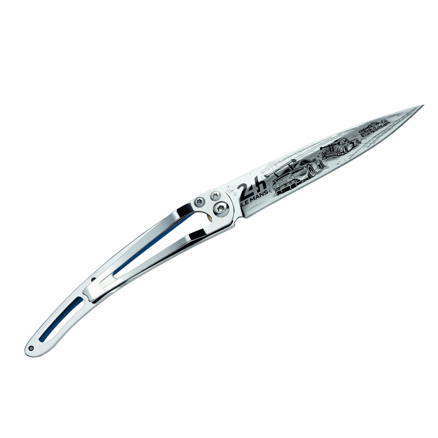 Stylový ultralehký nůž Deejo ze sběratelské edice 2025 24H Le Mans s oboustranným tetováním. Motivem je současná soutěž tří kagorií vozidel na jedné trati po dobu 24 hodin: vozidlo Hypercar, LMP2 a LMGT. Limitovaná a číslovaná edice 999 kusů. Dodáváno s certifikátem pravosti.