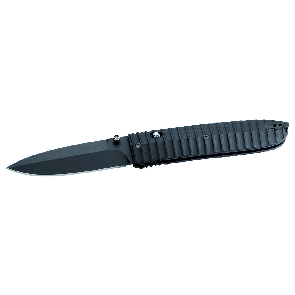 Kapesní nůž s čepelí z oceli D2 a rukojetí z hliníku.