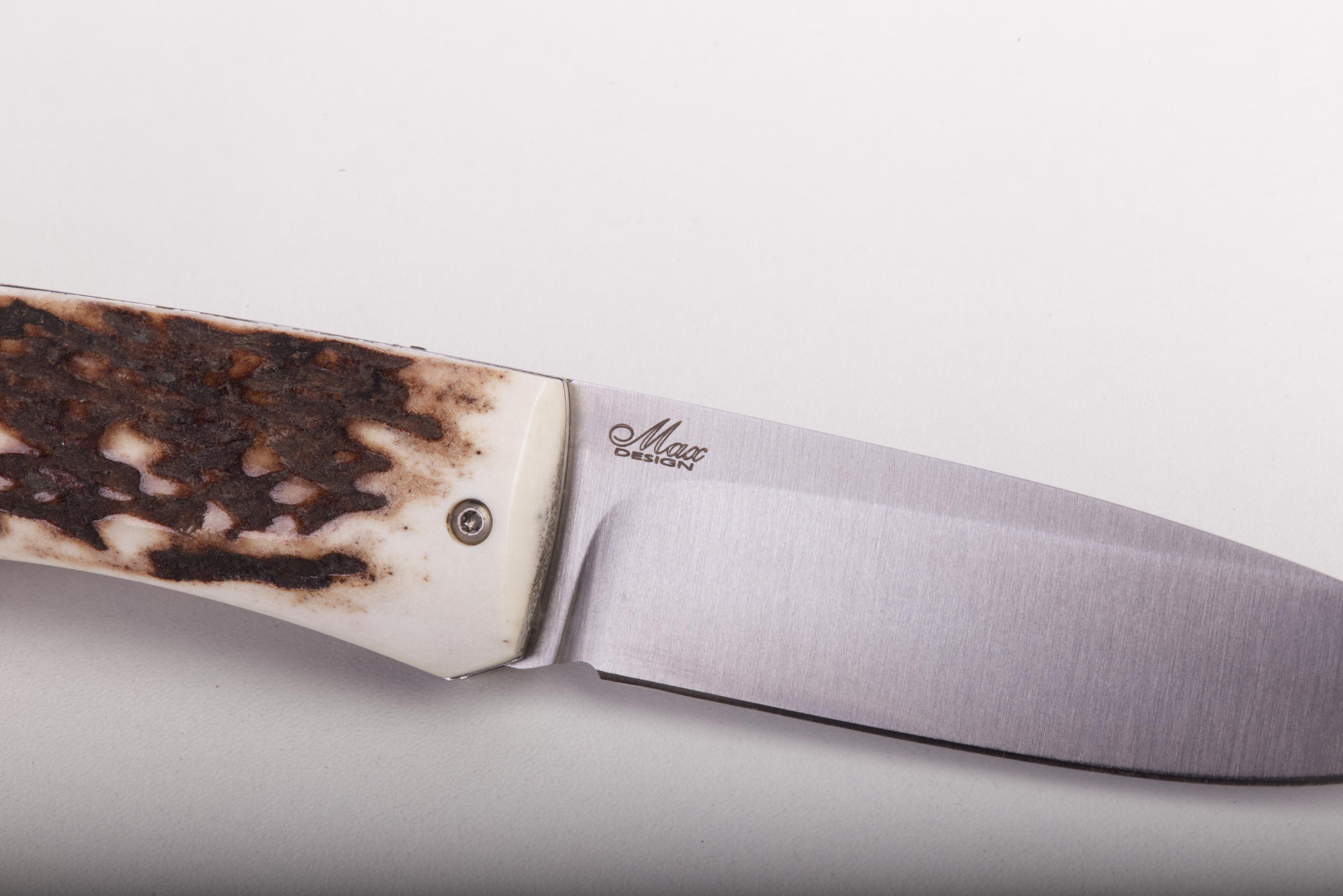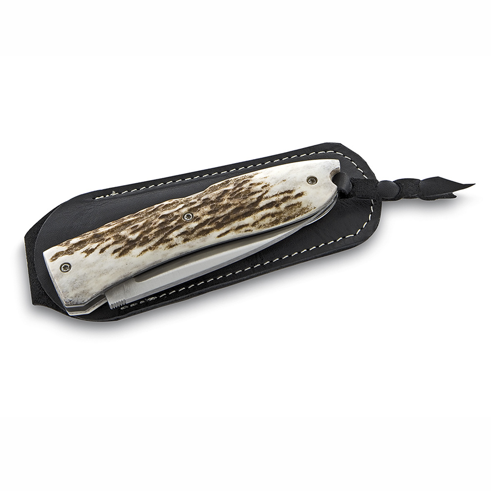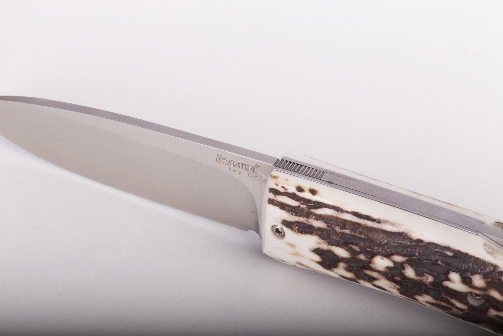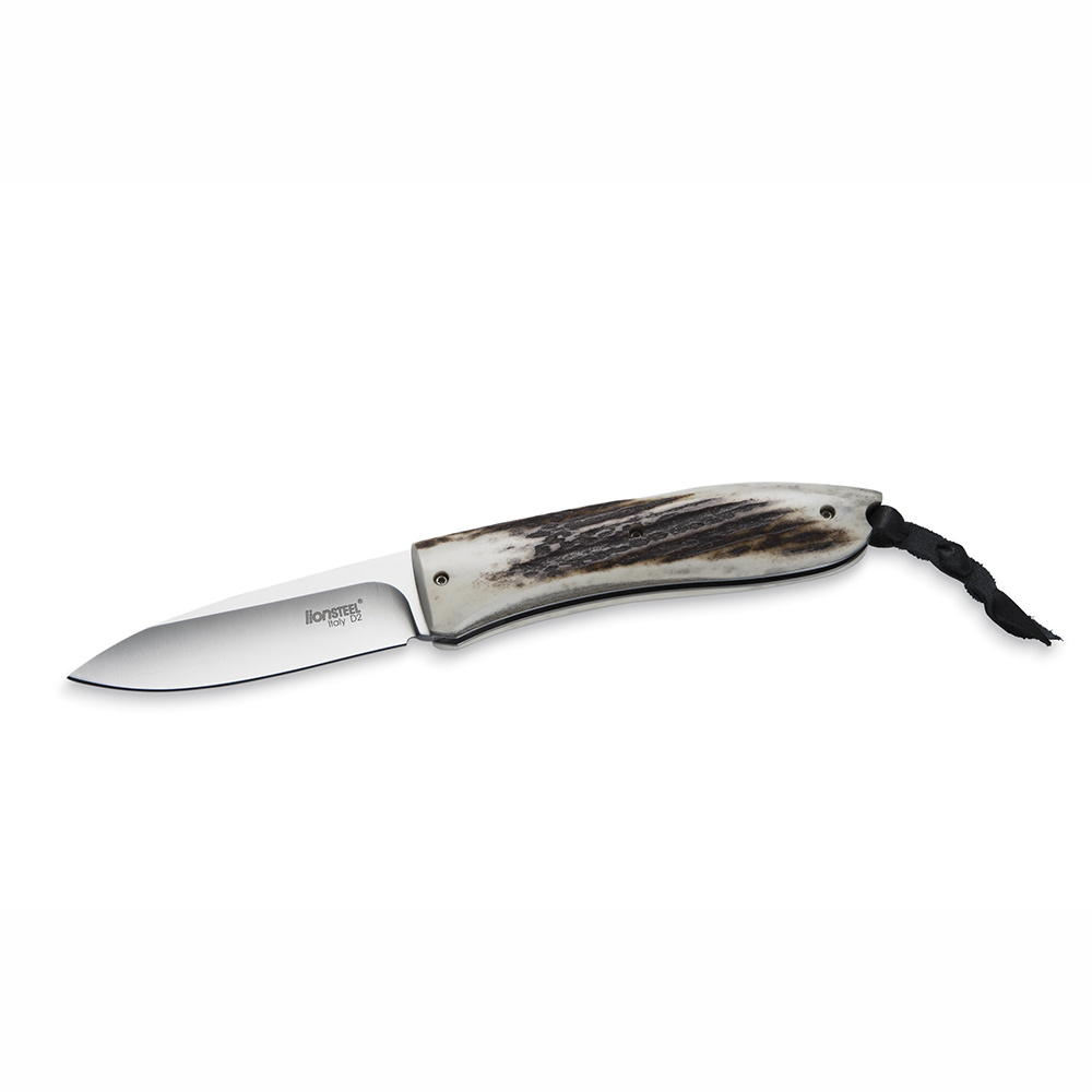 Kapesní nůž s čepelí z ocele D2 Böhler a rukojetí z beraního rohu.
