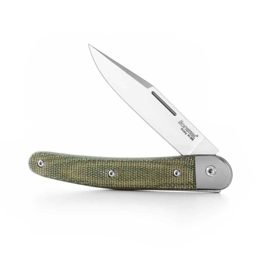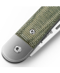 Jack je nový tradiční kapesní nůž s čepelí z ocele M390 a rukojetí z voděodolného zeleného canvasu.