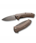 Velmi robustní kapesní nůž s čepelí Sleipner a rukojetí z materiálu G10 v hnědé barvě.