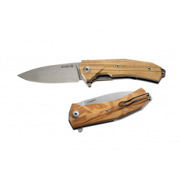 Velmi robustní kapesní nůž s čepelí Sleipner a rukojetí z olivového dřeva.