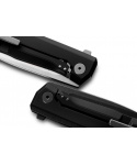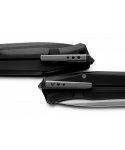 Myto je hi-tech EDC zavírací nůž s čepelí z ocele M390 a rukojetí z černého hliníku, Součástí je klip na opasek a rozbíječ skla.