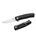 Myto je hi-tech EDC zavírací nůž s čepelí z ocele M390 a rukojetí z černého hliníku, Součástí je kli