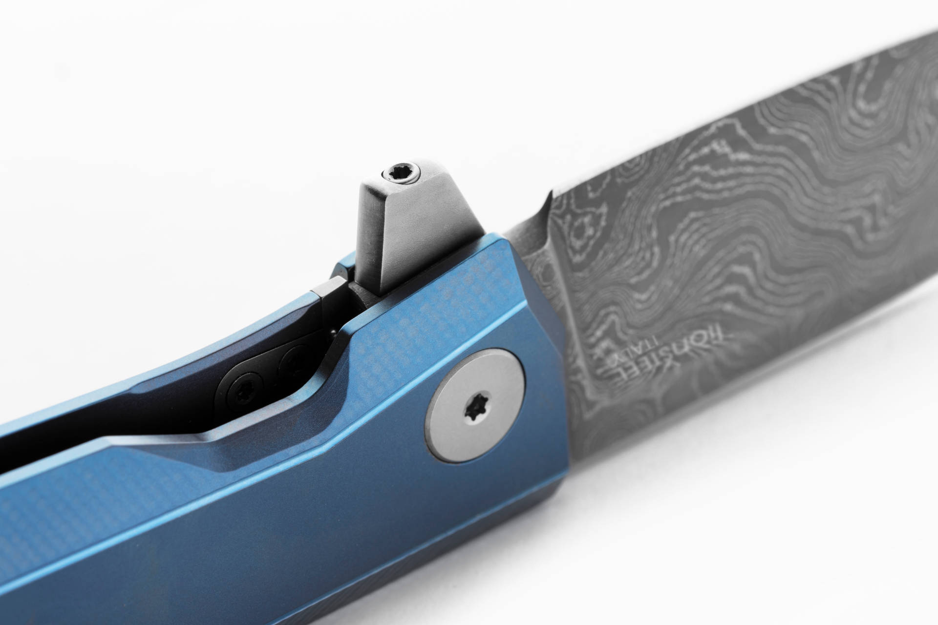 Luxusní kapesní nůž s rukojetí z masivního titanu, čepelí z exkluzivní damaškové ocele a pojistkou č