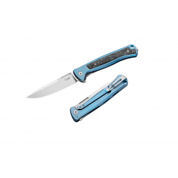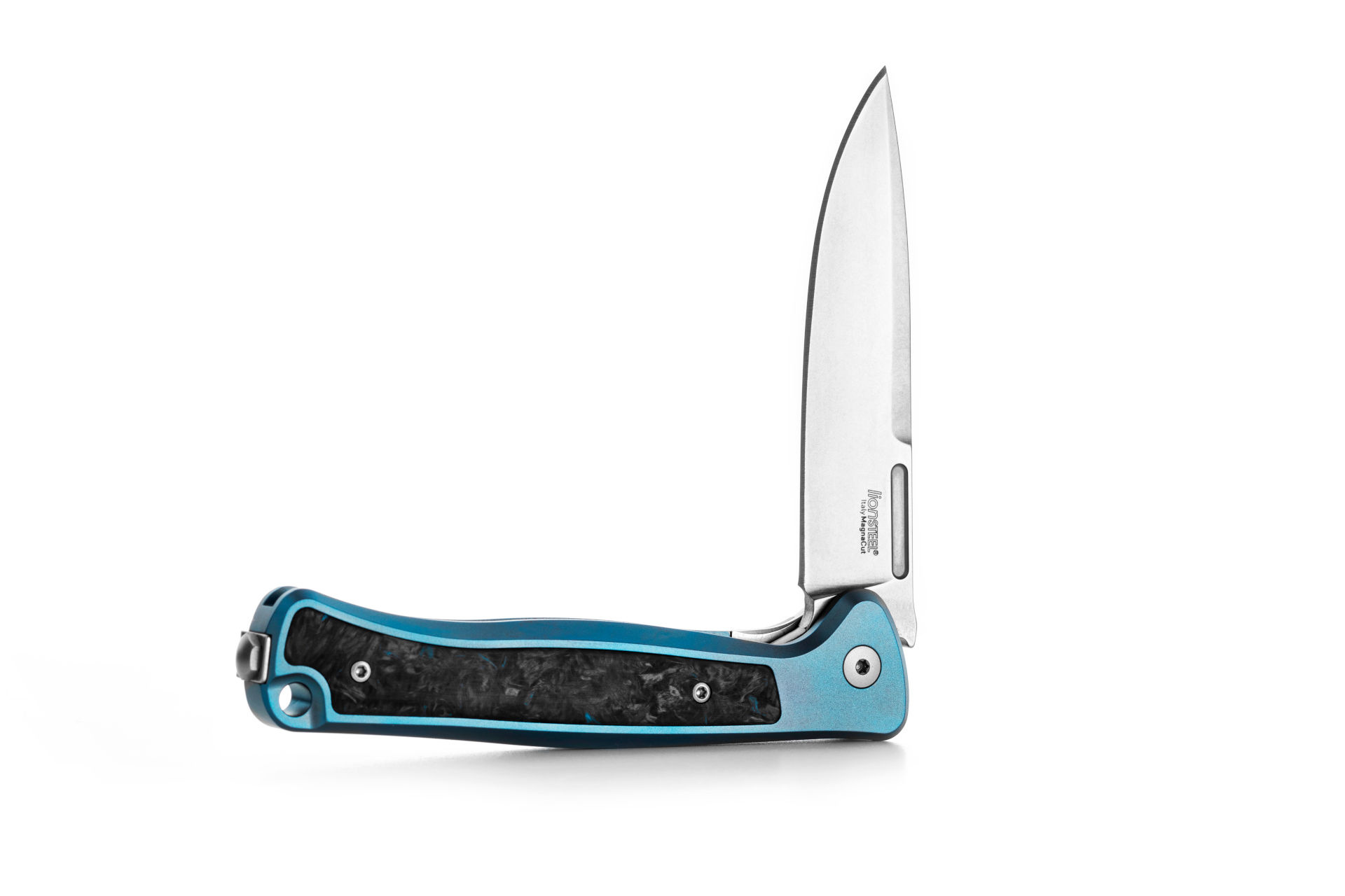 Skinny je novinka roku 2024, velmi lehký kapesní nůž tradičních tvarů z nejmodernějších materiálů, tato dražší verze má tělo z titanu s vsadkou z barevného karbonu.