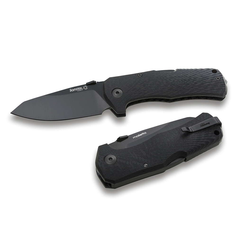 Kapesní nůž LionSteel TM1 CB čepel ocel Sleipner černá,karbonová rukojeť,pouzdro,rozbíječ skla