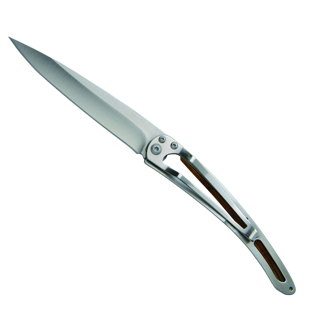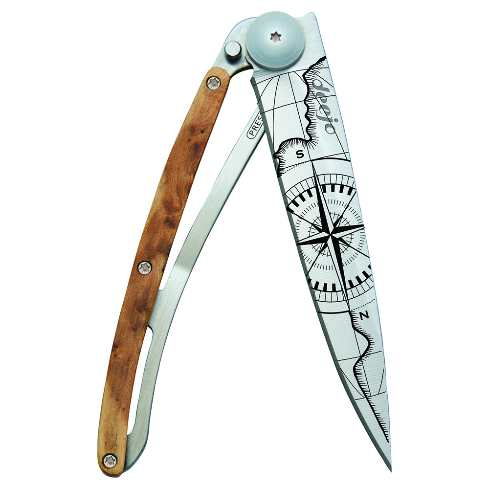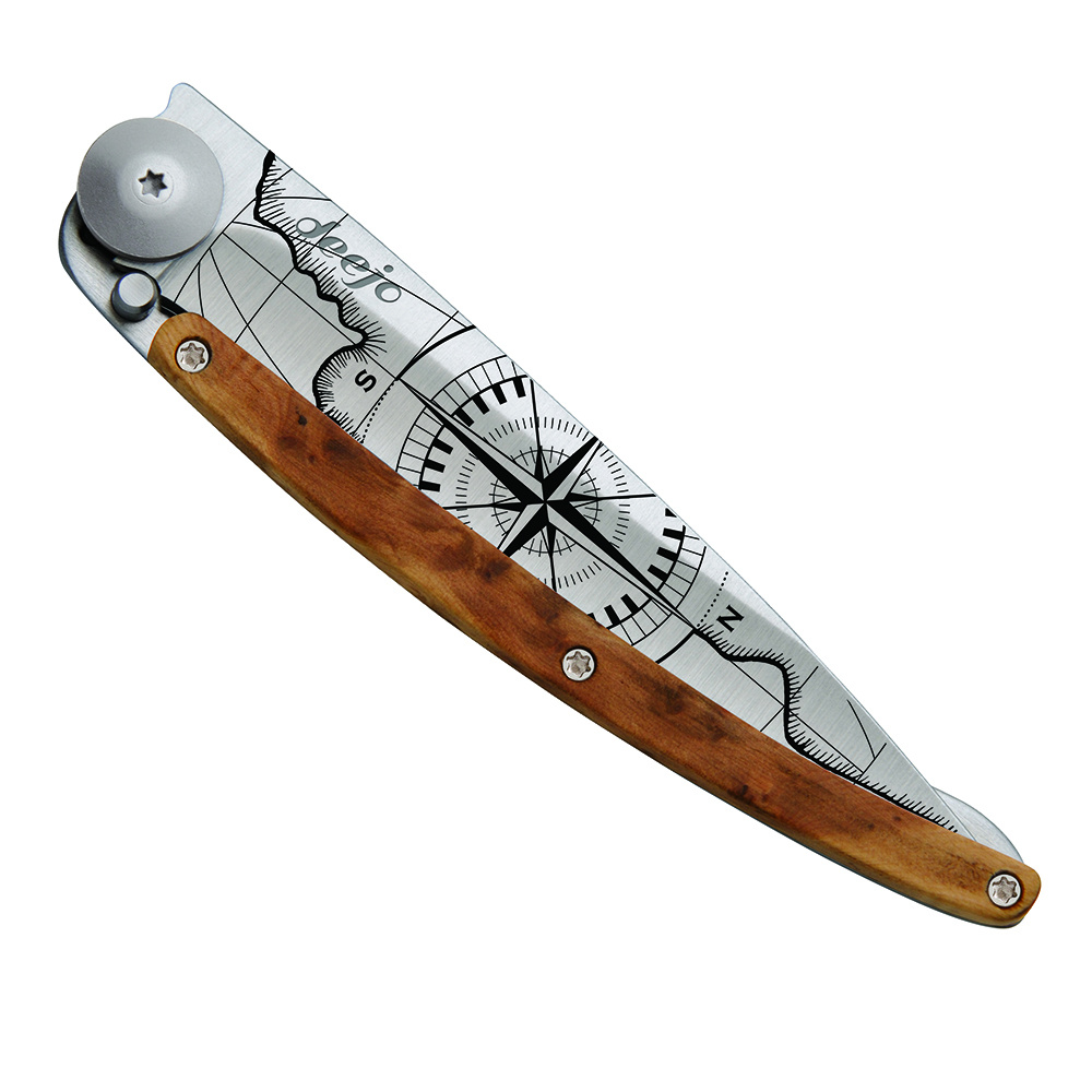 Stylový ultralehký nůž Deejo se střenkou z kořene exotického jalovce - speciální limitovaná edice pro leváky.