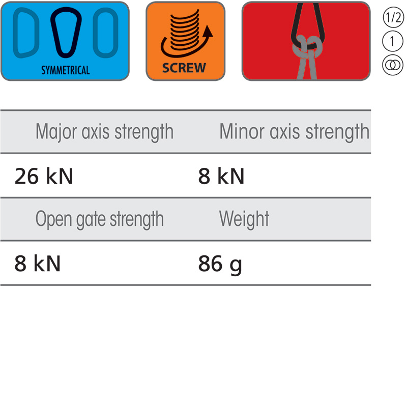 Be Lock Screw je velká symetrická HMS karabina s Keylock systémem a šroubovací pojistkou zámku pro bezpečné zajištění. Používá se pro připnutí jistítka, odsedávací smyčky i ke spouštění pomocí půl lodního uzlu. Šroubovací zámek má rychlý skluz, lze ho tedy snadno zatočit rychlým pohybem palce. Karabina Be Lock Screw je vhodná pro všechny typy lan - jednoduché lano, poloviční lano i dvojité.