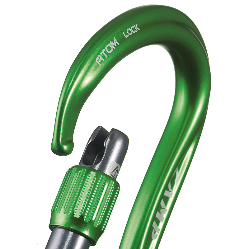 Atom Lock je velká HMS karabina určená k jištění a slaňování. Atom Lock je opatřena patentovanou úpravou SphereLock, která přesným výbrusem nosu a zámku karabiny zvyšuje pevnost při zatížení. Díky velké světlosti karabiny je práce s lanem snadnější. Nově upravená šroubovací pojistka zámku zaručuje optimální skluz závitu pro tu nejjednodušší manipulaci jednou rukou. Pro zvýšení bezpečnosti je zámek karabiny opatřen laserovým výbrusem, který značí, je-li pojistka zámku dostatečně zašroubována.
