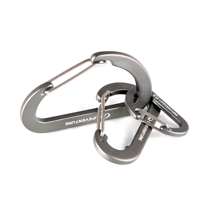Balení tří užitečných drátových karabin z anodizovaného hliníku. Karabiny využijete pokaždé, když budete potřebovat připevnit vybavení ke svému batohu či opasku.