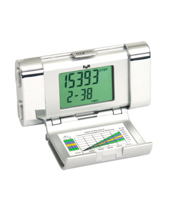 -elektronický krokoměr -zobrazuje 0 až 99 999 kroků -zobrazuje o až 9999 kilometrů -zobrazuje kalorie -výpočet indexu tělesné hmotnosti (BMI) -zobrazuje podíl tělesného tuku v % -osvětlení displeje -přepínání mezi km a mílemi