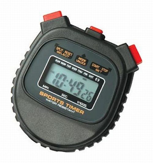 digitální stopky s mezičasy, hodinami, budíkem a datem
