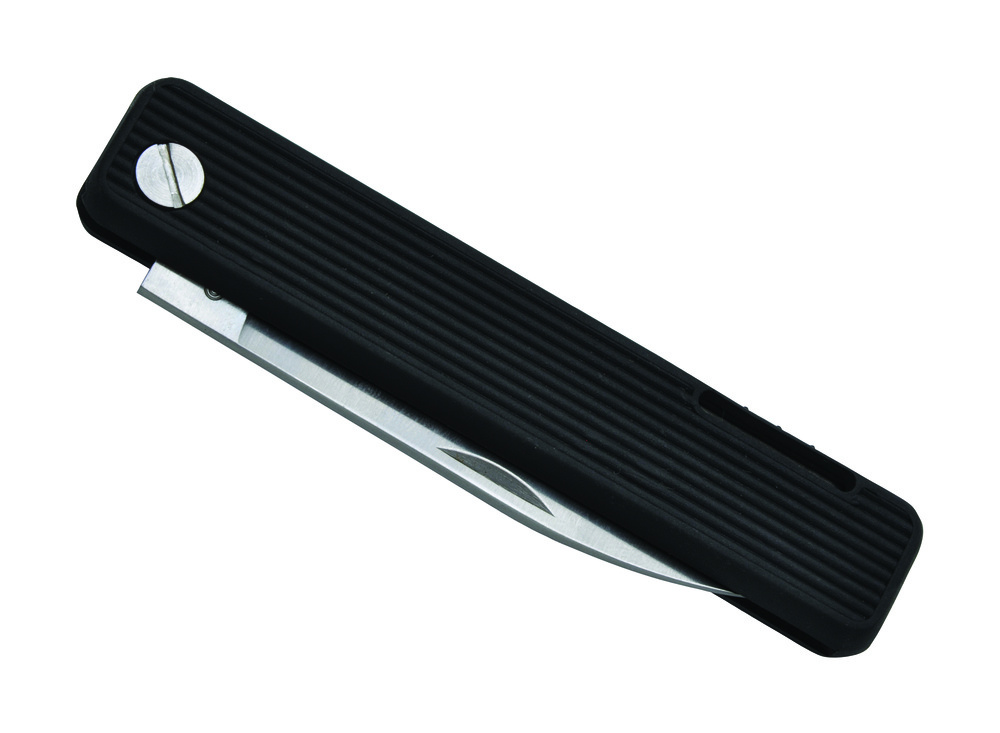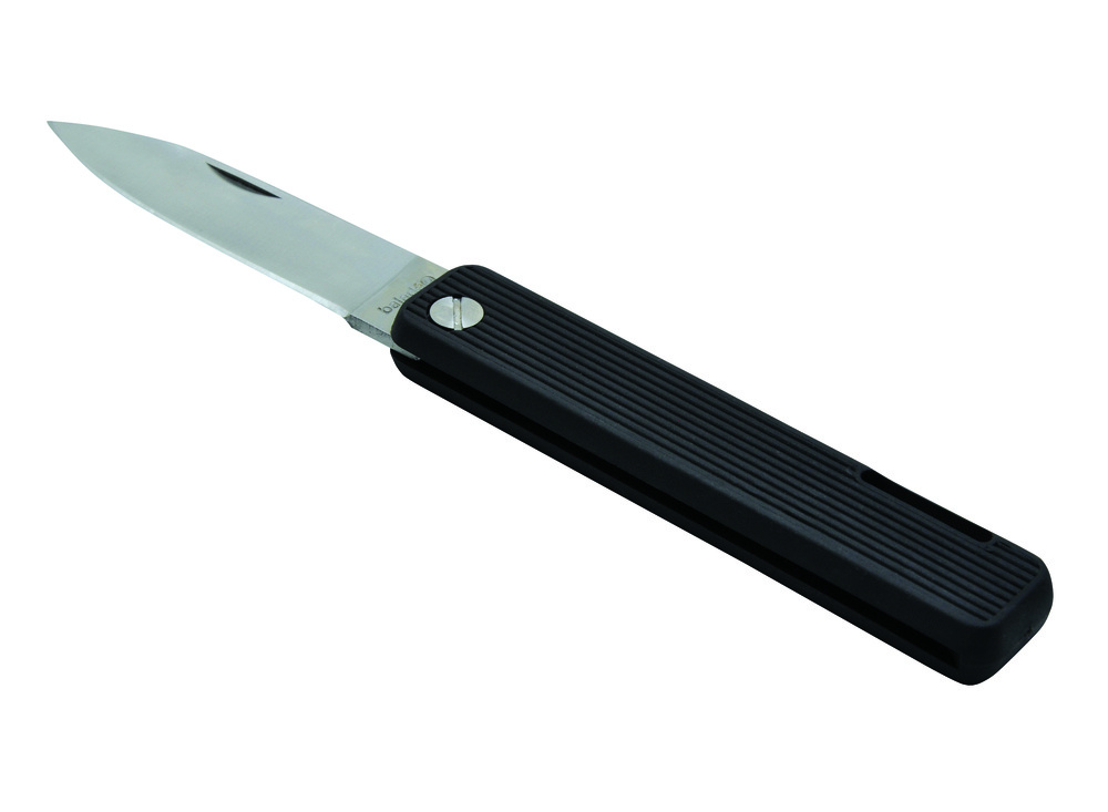Kempingový nožík se silikonovou rukojetí a bezpečnostní pojistkou.