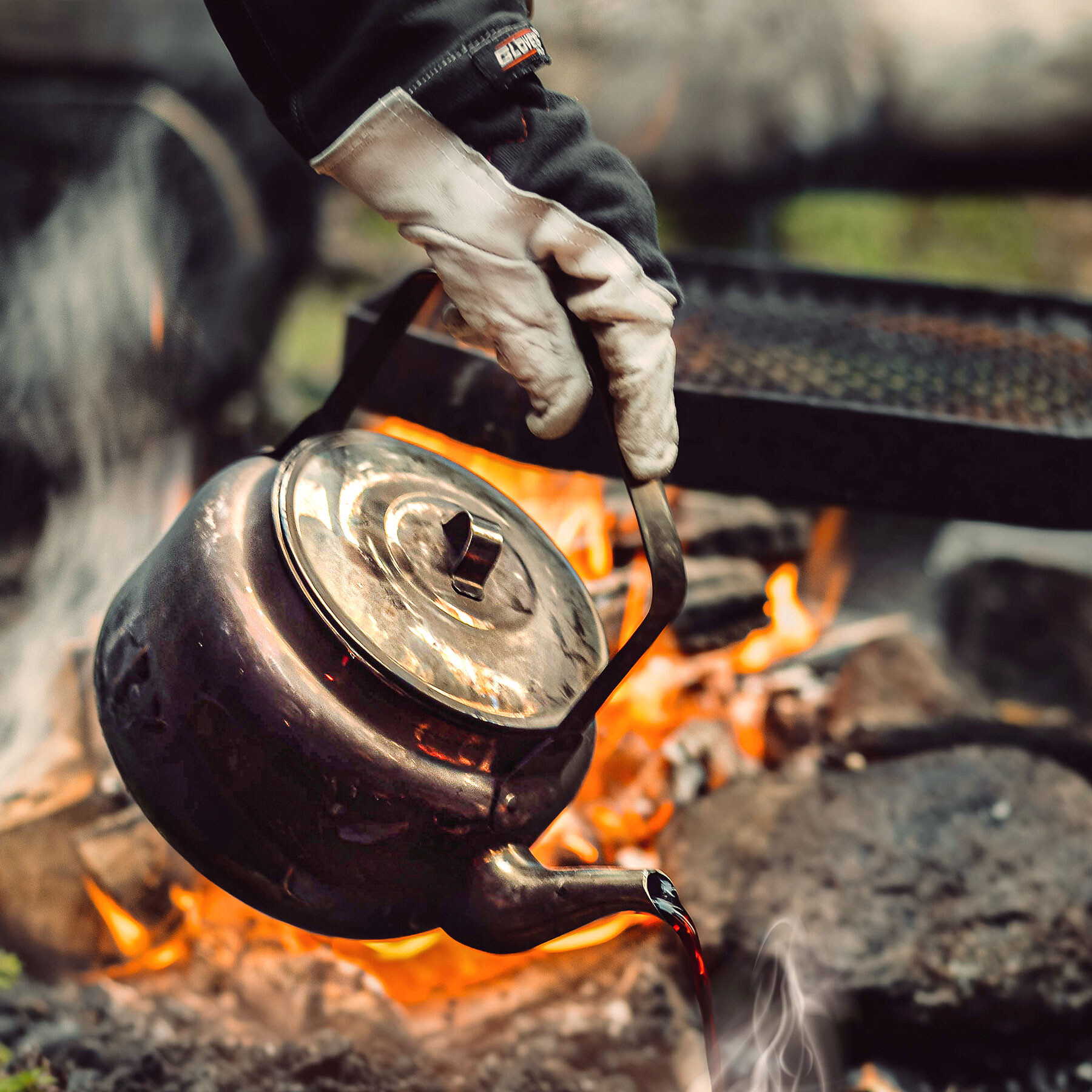 Kávová nebo čajová konvička Stabilotherm Kaffepanna 2L pro použití u táboráku. Konvice je kompletně vyrobena z nerezové oceli a tvar rukojeti je přizpůsoben pro zavěšení na stojan nebo závěs. Víčko má kovovou smyčku, takže můžete použít například hůl ke zvednutí horkého víčka.