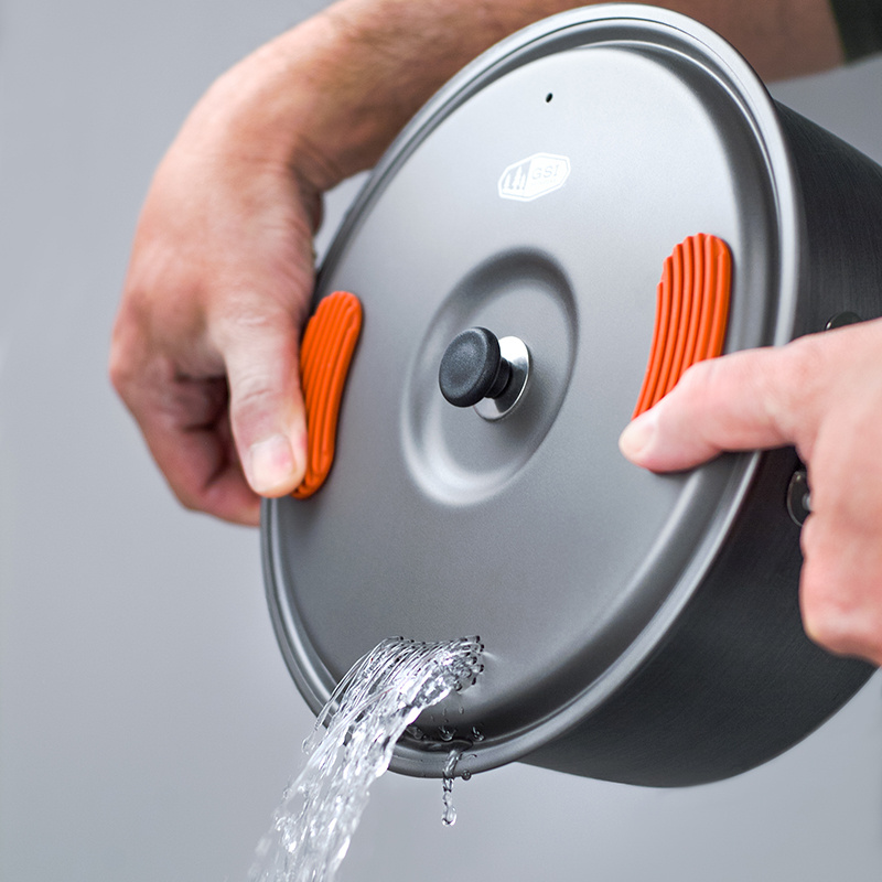 Lehoučký rodinný kotlík s ocelovými uchy pro snadnou manipulaci. Ultralehké víko obsahuje děrování pro zcezení a zároveň silikonové polštářky pro bezpečné přidržení. Spodní strana kotlíku má vyfrézované spirály pro bezpečné a pohodlné usazení kotlíku na vařič. Součástí balení je i stahovací síťka pro uložení kotlíku.