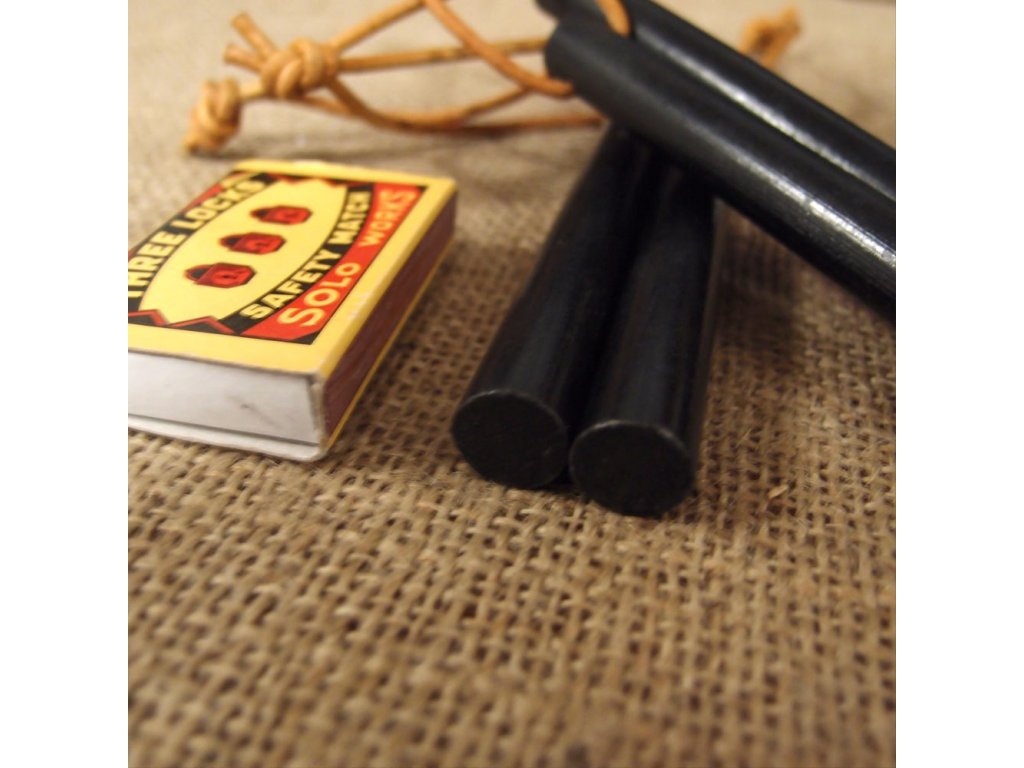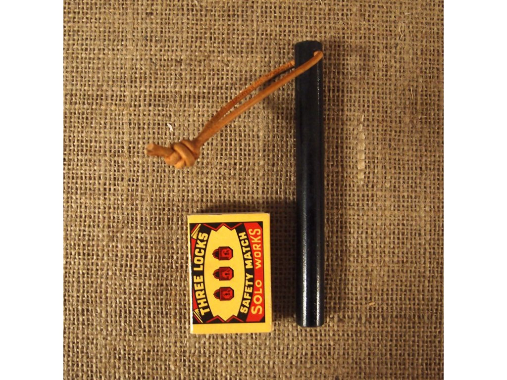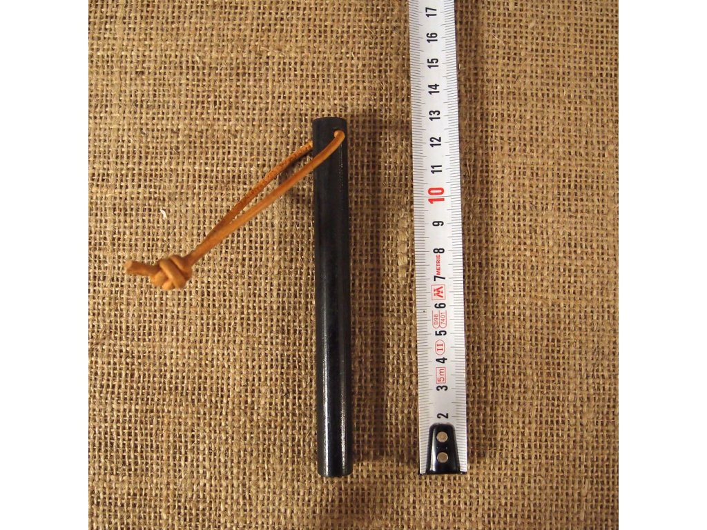 Křesadlo JuBö Firesteel STICK je obrovská masivní ocílka o tloušťce 13 mm obohacená o magnesium, při křesání a velké množství jisker s vysokou teplotou. JuBö Firesteel Stick XXL je dodávána bez plíšku, lze křesat o jakoukoliv ostrou hranu, např. hřbet nože, pazourek, ostrá hrana kamene. V horní části je průvlek s navlečenou koženou šňůrkou.