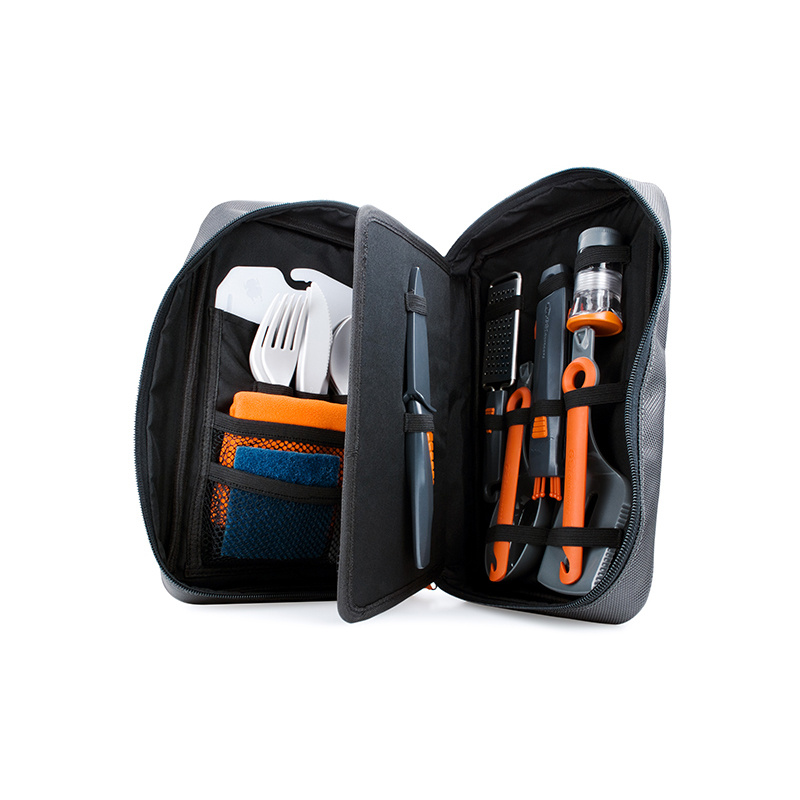 Kuchyňská sada pro 4 osoby. Sada je vhodná pro všechny labužníky, kteří chtějí mít své nádobíčko po celou dobu kempování stále pěkně uklizené. Celá sada je umístěna v pevném, dobře omyvatelném pouzdře.Kemping nemusí znamenat pouze omezování se. Tento kuchyňský set je tomu důkazem. Je dokonalým společníkem nejen pro gurmány. V kuchyni se pak můžeme těšit třeba na nadýchané omelety, palačinky, grilované dobroty a nebo třeba mexickou hostinu.