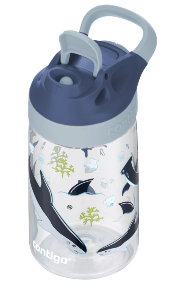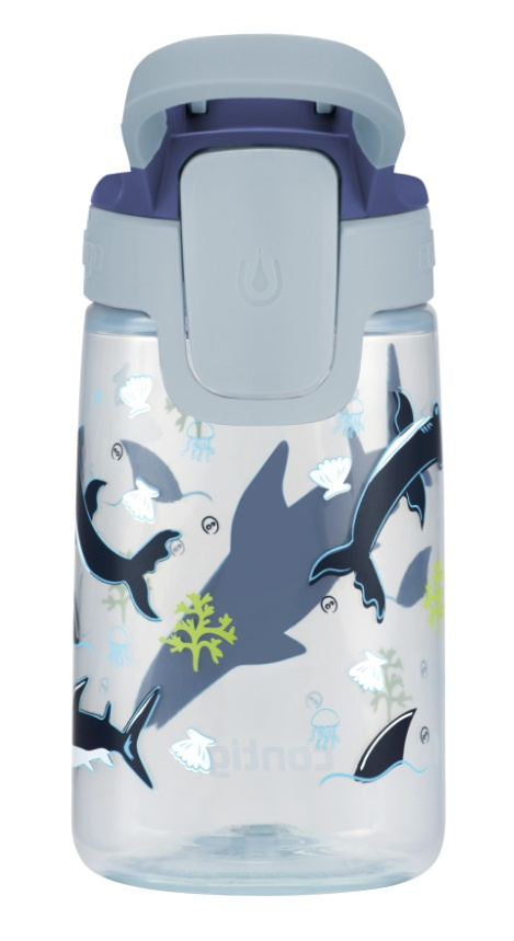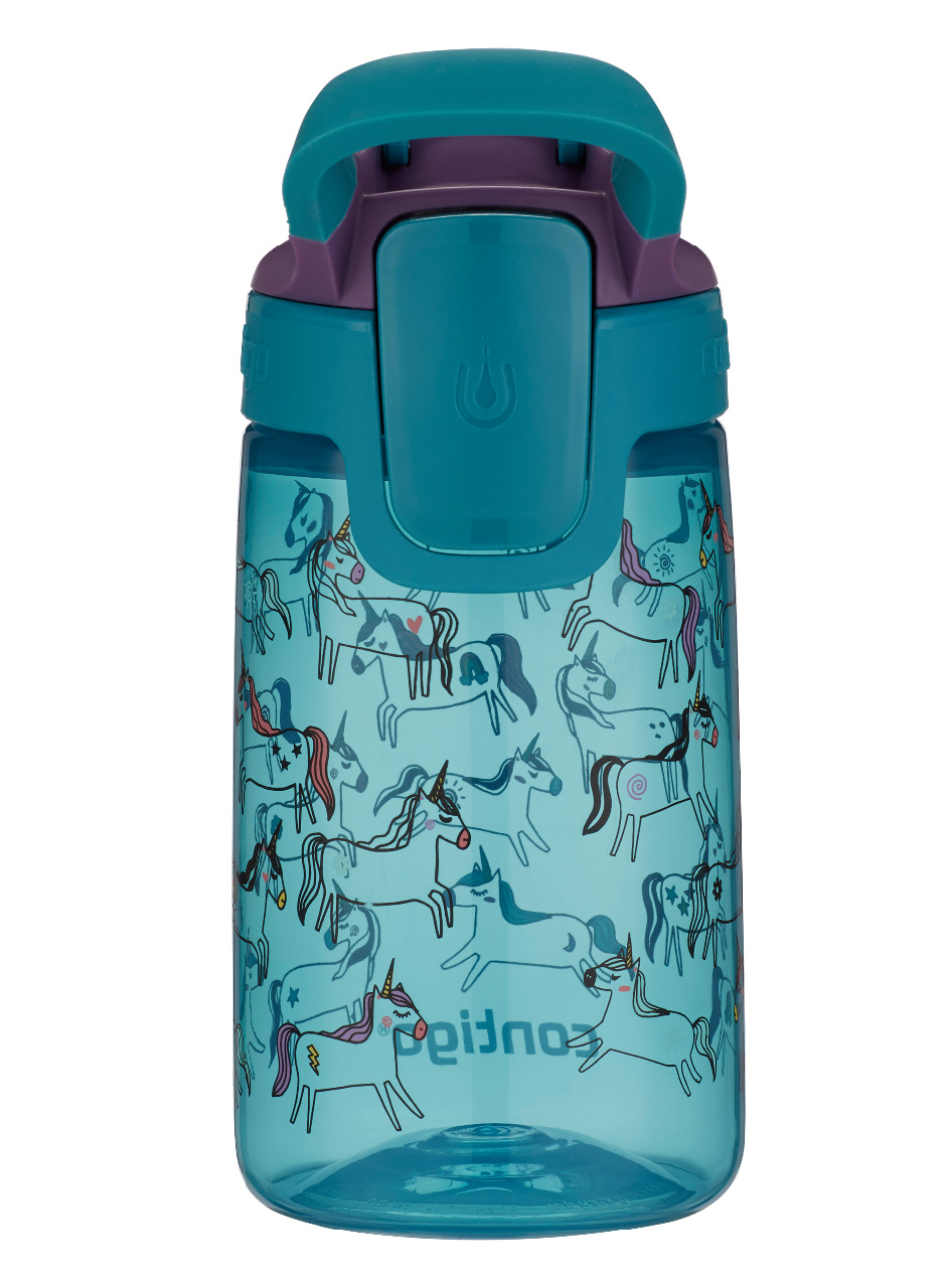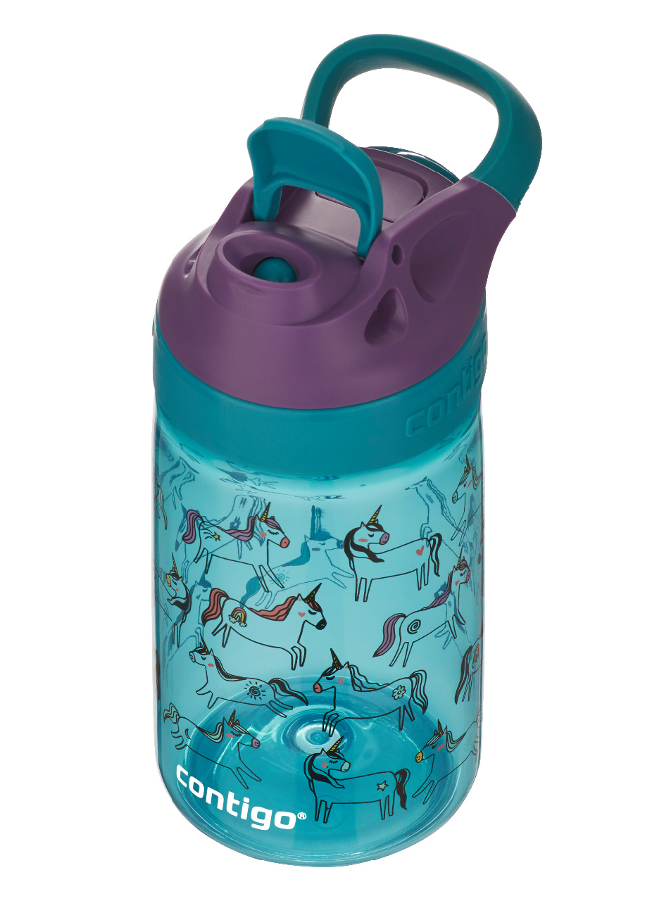 Dětská hydratační lahvička v okouzlujícím designu se systémem AUTOSEAL® zabraňujícím náhodnému rozlití tekutiny opatřená krytem pítka pro hygienické používání venku v jakémkoliv počasí a držadlem z měkkého plastu.