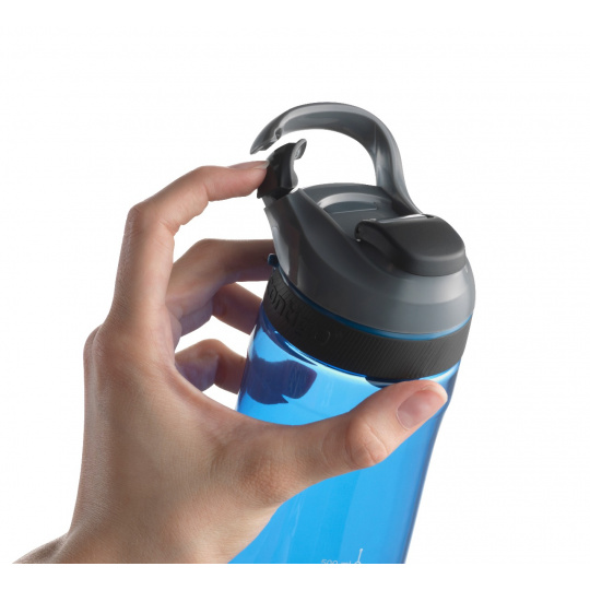 Sportovní hydratační láhev se systémem AUTOSEAL® zabraňujícím náhodnému rozlití nápoje opatřená zámkem uzávěru proti stisknutí tlačítka Autoseal v zavazadle, krytem pítka pro hygienické používání venku v jakémkoliv počasí a integrovanou karabinou. Víko lze rozložit pro snadné čištění.