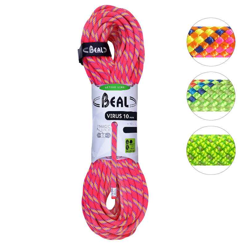 Univerzální lano pro široké spektrum uživatelů o průměru 10mm. Certifikaci má pouze jako jednoduché lano. Určené pro příležitostné, ale i výkonnostní lezce. Díky svému průměru je vhodné pro většinu typů jistítek. Virus 10mm patří do základní skupiny Active Line, která nabízí dokonale vyvážený poměr cena/výkon.