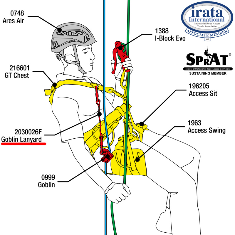 Doplňkový lanyard z lanovice se zašitými konci pro zachycovač pádů CAMP Goblin při zajištění na pomocném lanu. Lanyard je v délkách 30cm nebo 60cm a pomocí vodícího kroužku CAMP Goblin Rope Surfer zaručuje Goblinu bezproblémový chod po lanu při stoupání nebo spouštění. Goblin Lanyard je připraven pro připojení pomocí dvou ocelových oválných karabin (nejsou součástí lanyardu). Pro zvýšení bezpečnosti je lanyard vybaven gumovými zarážkami, které brání protáčení karabiny.