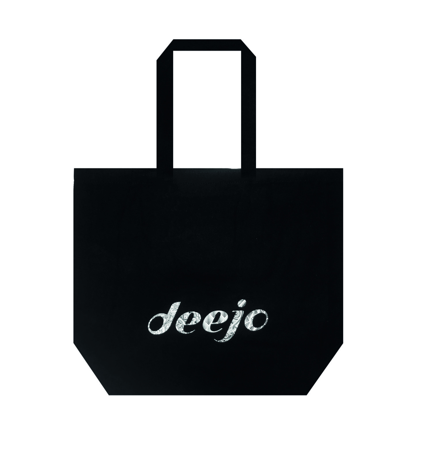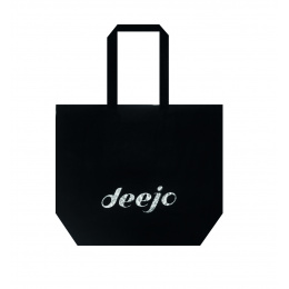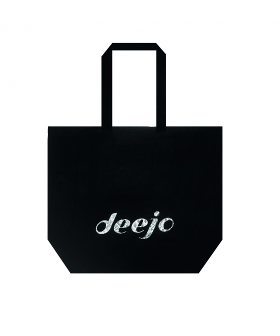Černá látková taška s potiskem loga Deejo, uvnitř malá kapsička na zip.