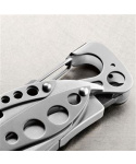 Leatherman SKELETOOL zaujme na první pohled. Nevšední design je propojen s účelností a díky odlehčovacím otvorům váží tento sedminástrojový multiool pouhých 142 gramů, což mu nijak neubírá na funkčnosti a extrémní odolnosti. To ocení zejména horolezci, ale i cestovatelé, kteří počítají každý gram hmotnosti navíc a potřebují se spolehnout na rychlé a kvalitní nářadí. Tělo z nerezové oceli je vyplněno hliníkovou vložkou, nůž s kombinovanou čepelí lze snadno otevřít jednou rukou. Tradiční multifunkční kleště jsou dále doplněny o sérii šroubováků a otvírák na láhve. Díky kvalitní karabině můžete multitool jediným pohybem připnout za opasek či na batoh. Stane se tak stylovým pomocníkem, kterého budete mít po ruce v každé situaci.Balení obsahuje: multitool, bity: křížový # 1 a # 2 a plochý 3/16, odnímatelný klip na opasek, samolepku 100% originál, návodPARAMETRYDélka čepele: 6.6 cmDélka zavřeného nástroje: 10 cmHmotnost: 142 g Chcete být originální?nechte svůj multitool ogravírovat. NÁSTROJE Kleště s jehlovou špičkou Utahovací kleště Štípací kleště tvrdých drátů Štípací kleště měkkých drátů Nůž s kombinovanou čepelí z oceli 420HC Karabina/otvírák lahví Adaptér na bity