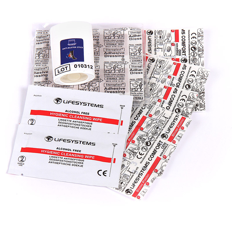 Set první pomoci určený k ošetření puchýřů po náročných tůrách apod. Je uložen v odolném pouzdře se zavíráním na zip a poutkem pro přichycení k opasku.