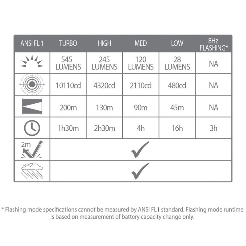 Odolná dobíjecí svítilna s vysoce výkonnou Nichia diodou o výkonu až 545 lumenů a dosvitem 45-200m. Svítilna nabízí 5 módů intenzity + blikací mód, vodě odolné hliníkové tělo a dobíjecí Li-Ion baterii s životností až 16h na nabití. Dobíjecí microUSB kabel je součástí svítilny.