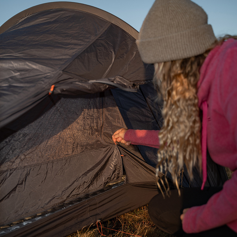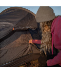 Díky vertikální tyči v oblasti nohou nabízí stan více prostoru, než by napovídala jeho velikost. Nechybí kvalitní YKK zip odolný proti zaseknutí, 3 kotevní body s lehkými Dyneema šňůrami (1,8 mm), 10 kolíků a praktická sada na opravy pro nouzové situace v terénu.