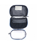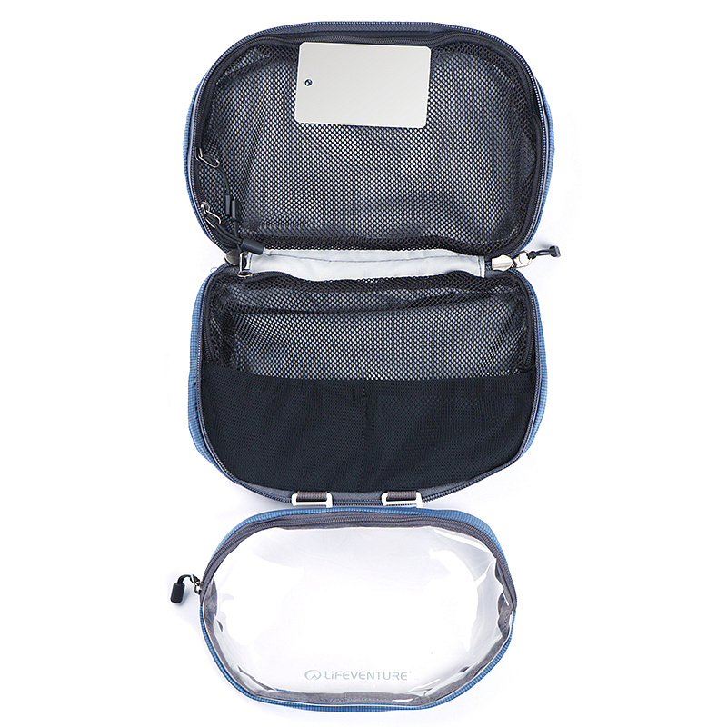 Hlavní přihrádka na zip obsahuje dvě vnitřní síťované kapsy pro lepší organizaci drobností. Odnímatelná vnitřní průhledná kapsa na zip poskytuje další prostor pro oddělené uložení věcí a praktické odnímatelné zrcátko oceníte všude tam, kde není k dispozici koupelnové zrcadlo. Nechybí ani kovový háček pro zavěšení a madlo pro pohodlné přenášení – ideální řešení pro hostely, kempy i hotelové koupelny.