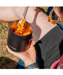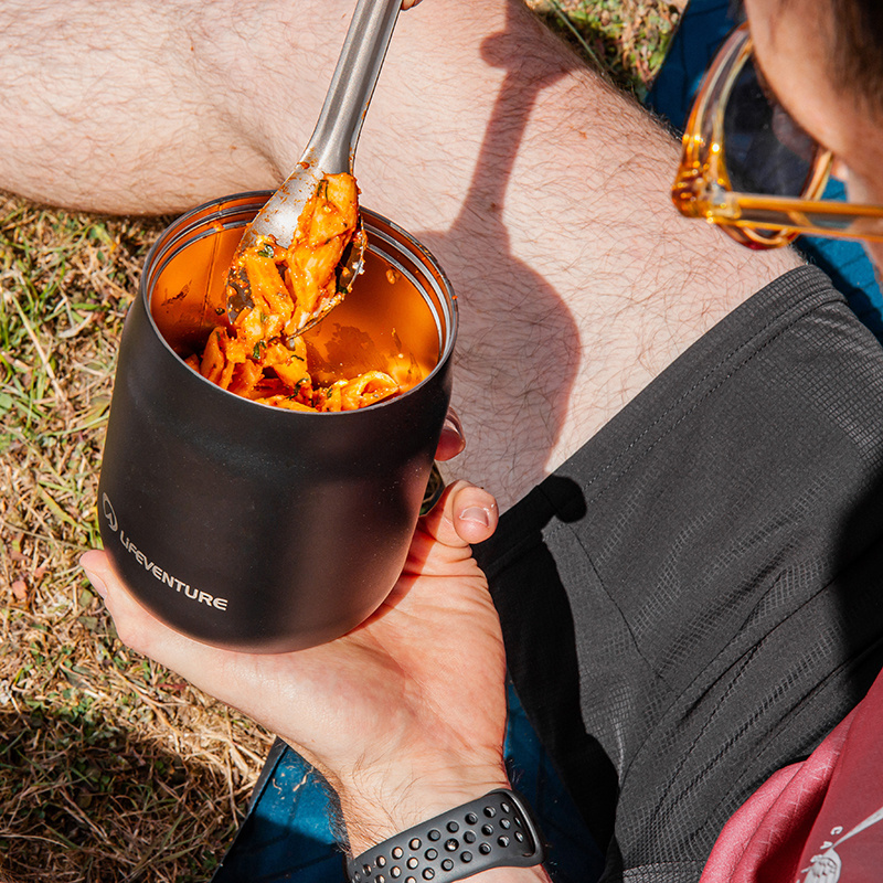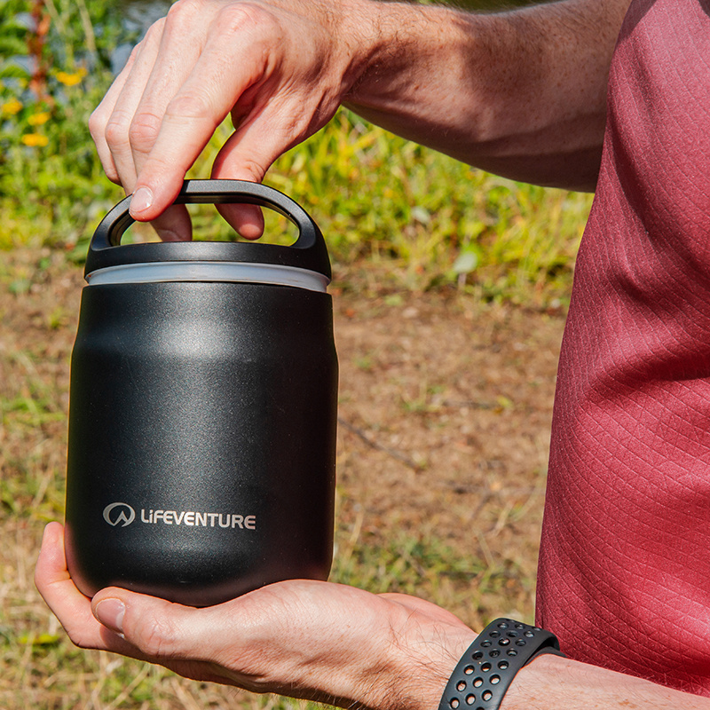 Dvouplášťová termoska na jídlo z odolného nerezu je skvělým společníkem pro kempaře i batůžkáře. Široký šroubovací uzávěr s lisovaným madlem je bezkonkurenční předností, kterou oceníte při každé outdoorové akci. Díky vakuové izolaci si můžete vychutnat teplý nápoj nebo jídlo až po dobu 8 hodin a studený až po dobu 12 hodin.