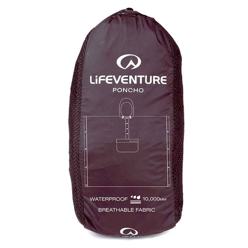Lehoučké a snadno sbalitelné pončo je důležitým doplňkem a nemělo by chybět ve výbavě žádného dobrodruha. Poncho Lifeventure je připravené pro použití také jako nouzový přístřešek, který můžete snadno ukotvit pomocí připravených děr v zesíleném krajním lemu. Použitá textilie je prodyšná a nabízí odolnost proti vodě 10 000 mm HH.