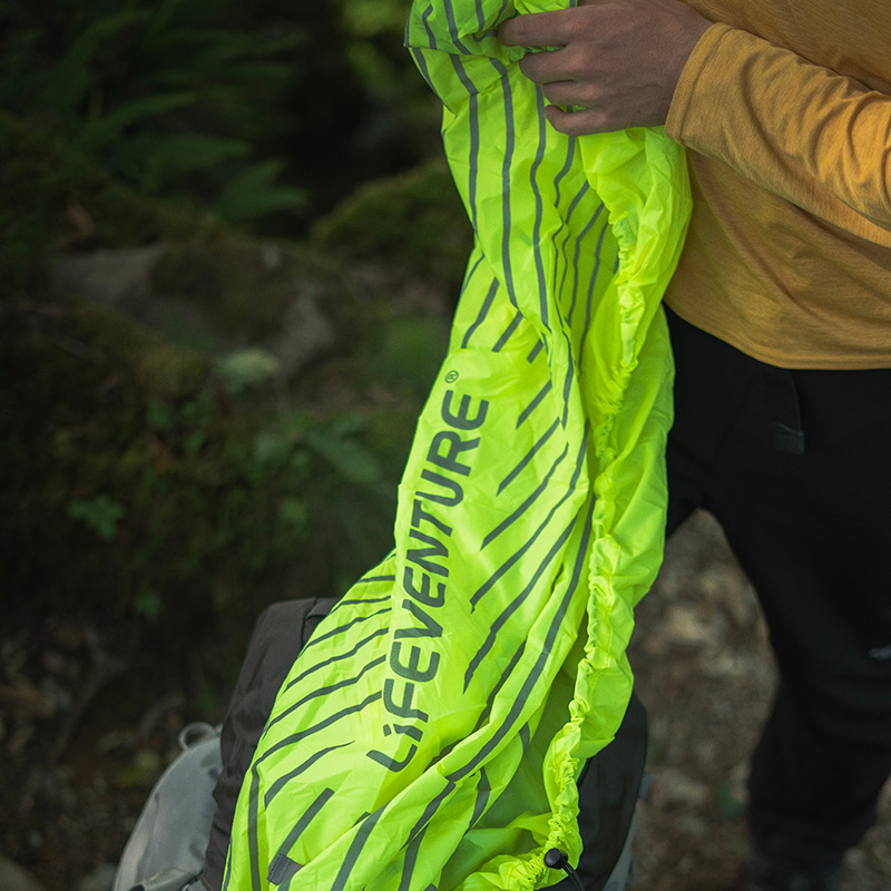 Pláštěnka na batoh v neonově žluté barvě, doplněná o reflexní prvky. Vhodná pro batohy o velikosti 55 - 70 litrů.
