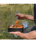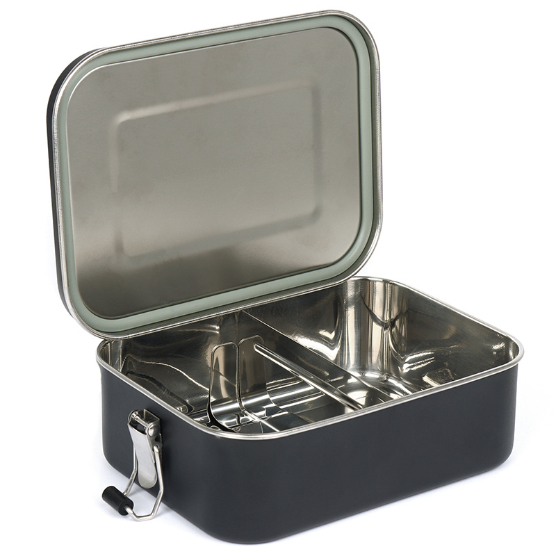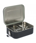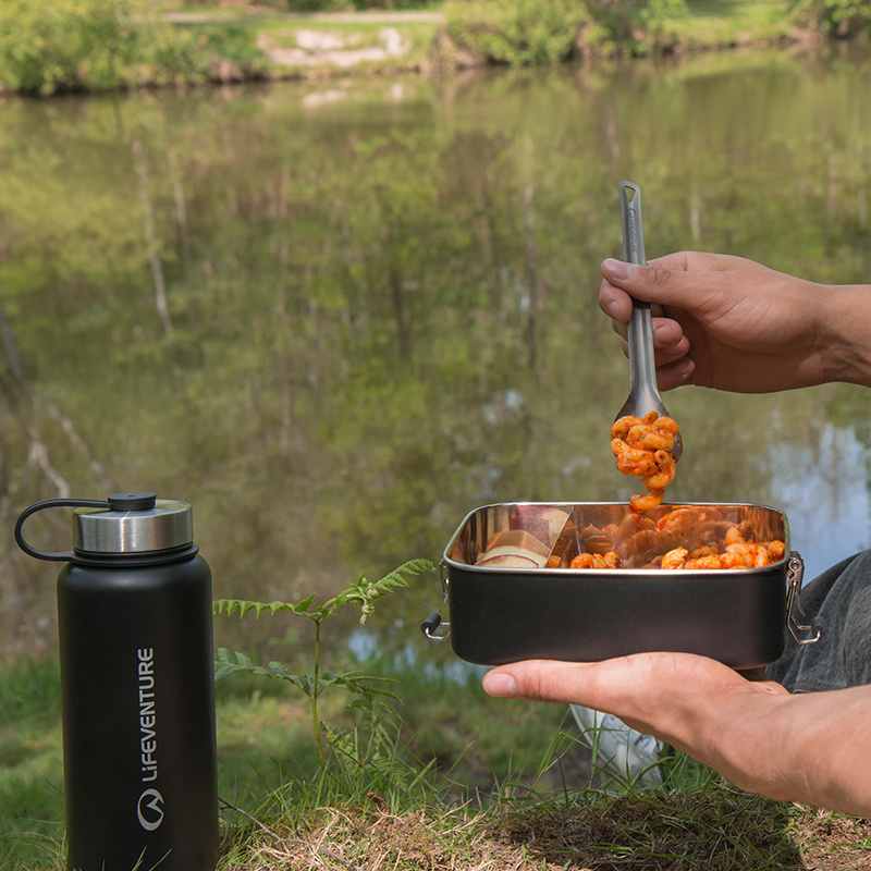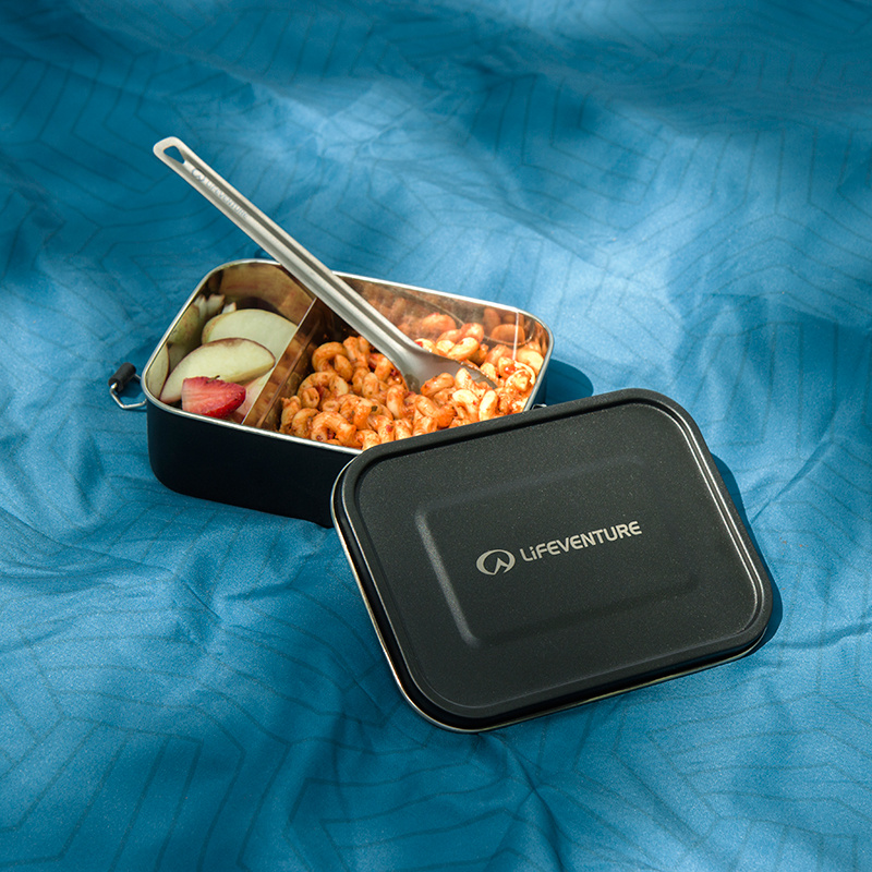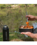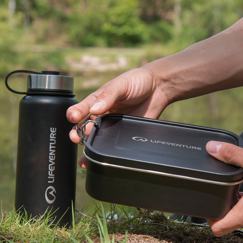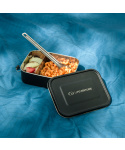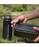 Obědový / svačinový box s vnitřní posuvnou přepážkou a objemem 1,2 litru je nepostradatelný parťák pro vaše dobývání přírody. Vodotěsné víko lze bezpečně připevnit pomocí bočních aretačních pacek. Všechny komponent jsou vyrobeny z kvalitního potravinářského nerezu.