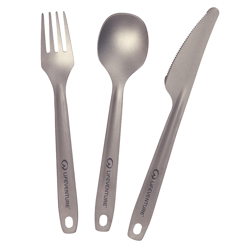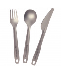 Superlight Titanium Cutlery Set je sada příborů z rodiny ultra lehkého titanu, vhodná pro každou outdoorovou aktivitu. Potěší každého nadšence, který hledá TOP vybavení s nejvyšším výkonem a nejnižší hmotností. Sada se skládá z nože, vidličky a lžíce a je vyrobena z lehké a odolné titanové slitiny, která je pevnější a 2 × lehčí než ocel. Součástí je transportní síťovaný obal.