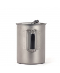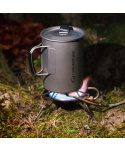 Kompaktní 800 ml titanový rendlík se sklápěcími uchy a perforovanou pokličkou. Obrovskou výhodou titanu je jeho velmi nízká hmotnost. Oproti oceli je hmotnost poloviční, ale pevnost je stejná. Rendlík váží pouhých 115 g a je ideální pro vaření na treku i v kempu.