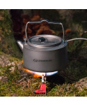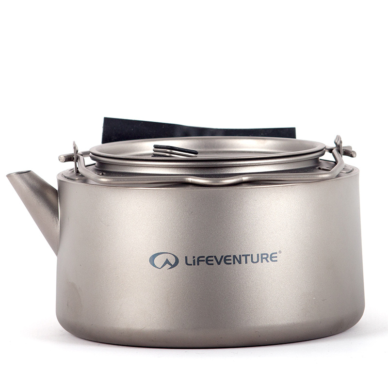 Stylová a kompaktní litrová titanová konvice se sklápěcím madlem, nálevkou pro snadné servírování a perforovaným víkem. Obrovskou výhodou titanu je jeho velmi nízká hmotnost. Oproti oceli je hmotnost poloviční, ale pevnost je stejná. Titanium Kettle tak váží pouhých 210 g a je ideálním společníkem pro jakýkoli výlet do kempu.
