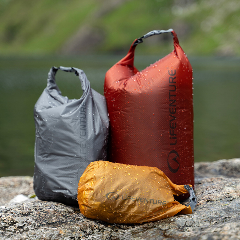 Ultralight Dry Bags Multipack je sada voděodolných vaků menších objemů 1, 2 a 5 litrů. UL Small Dry Bags jsou vyrobeny z vysoce pevné ripstop nylonové tkaniny – tyto ultralehké voděodolné vaky jsou zároveň lehké i odolné. Vnější silikonová úprava a vnitřní PU zátěr spolu s plně podlepenými švy zajišťuje, že obsah zůstane zcela suchý. Poloprůhledné barvy umožňují snadno rozlišit a identifikovat obsah. Pro bezpečné uzavření stačí horní okraj třikrát srolovat a uzavřít ho pomocí lehké přezky Kross, která dokonale zabrání průniku vody.